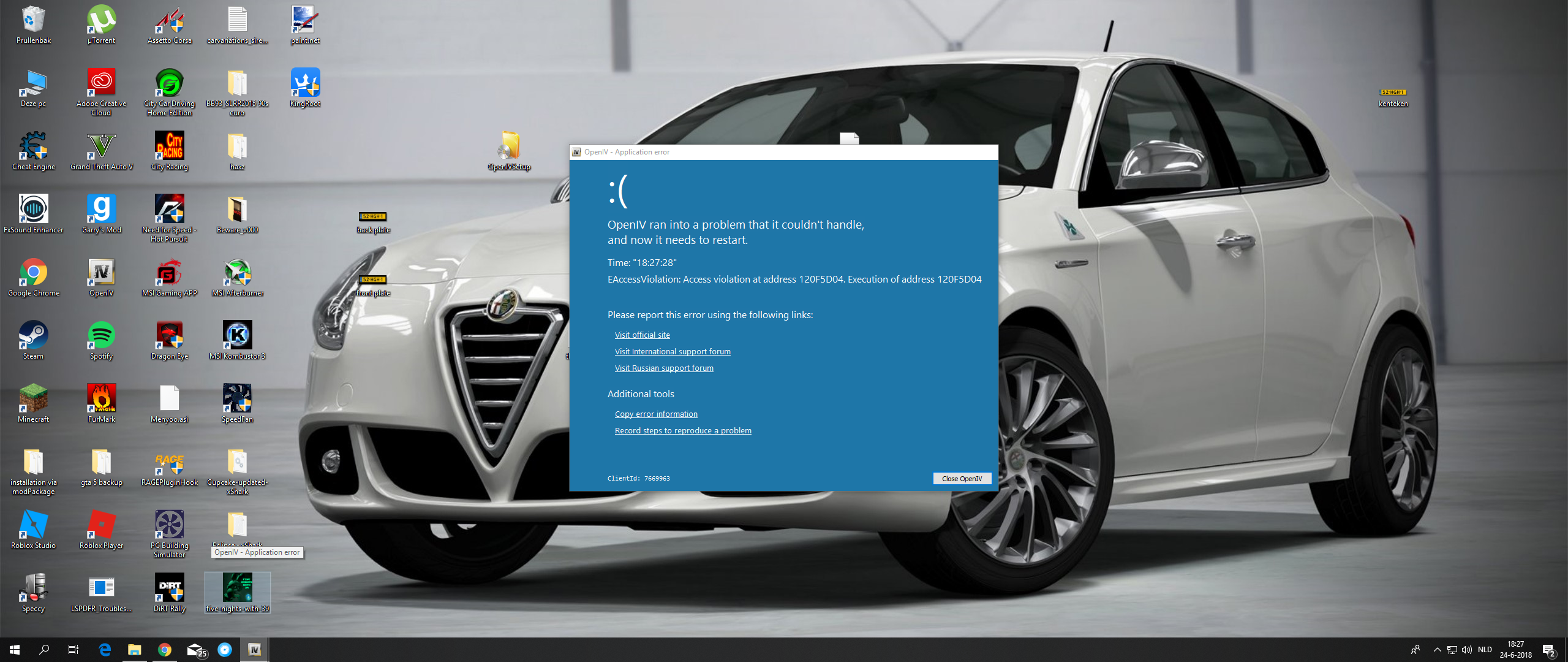 Hello, I have the same problem to open the yft texture files and other textures, I did the procedure passed by friend Kiq, but it did not work. Following picture and error description. (I found an solution: 1- Go to sysWOW64 (almost where is System32); 2 - Found a file called "d3d9.dll"; (and make a backup/copy to your desktop); 3 - Rename the dll file to "Reshade64.dll"; Attention, When u do that when u open a file (in OpenIV) it will be unreadable. If u want read, change the "reshade64.dll file in the Syswow64 to desktop file "d3d9.dll" .) ================ Time: "21:06:16" Type: "EDirect3DInitializationException" Message: "Incompatible D3D modules." Additional information: [Context] App::Lang=en_GB Main::ExploreArchiveNode::WorkItem=F:\Program Files (x86)\Steam\steamapps\common\Grand Theft Auto V\mods\x64e.rpf|levels\gta5\vehicles.rpf| GetSystemDefaultLangID=1046 SysLocale={ DefaultLCID: "1046", PriLangID: "22", SubLangID: "1", FarEast: "True", MiddleEast: "True" } App::Path=C:\Users\Alex Freitas\AppData\Local\New Technology Studio\Apps\OpenIV\ GetThreadLocale=1046 (0x0416) Game::Platform=pc Main::ExploreArchiveNode::ParentArchive=F:\Program Files (x86)\Steam\steamapps\common\Grand Theft Auto V\mods\x64e.rpf|levels\gta5\vehicles.rpf WebClientIndex=1915492670 Core::OpenArchive::LastCall=F:\Program Files (x86)\Steam\steamapps\common\Grand Theft Auto V\mods\x64e.rpf|levels\gta5\vehicles.rpf ApplicationPath=C:\Users\Alex Freitas\AppData\Local\New Technology Studio\Apps\OpenIV\ OS=Windows 10 (Version 10.0, Build 0, 64-bit Edition) WebClientToken={316D8AC3-9043-4655-BDEE-382DF5222683} Game::ID=Five (GTA V) GetSystemDefaultLCID=1046 WebClientId=10307677 App::Temp=C:\Users\ALEXFR~1\AppData\Local\Temp\OpenIV_00DCE243\ Game::Path=F:\Program Files (x86)\Steam\steamapps\common\Grand Theft Auto V\ [Windows] TMainWindow=OpenIV - vehicles.rpf - [Read only mode] TActionsModule=ActionsModule TRageFragmentsWindow=police3.yft - OpenIV Model Viewer TErrorWindow=OpenIV - Application error [Exeption] Exe: 3.1.0.1033 27/07/2019 Address: 0x0163A75F ClassName: EDirect3DInitializationException MessageText: Incompatible D3D modules. ClientId: 10307677, ReportId: 111329 |