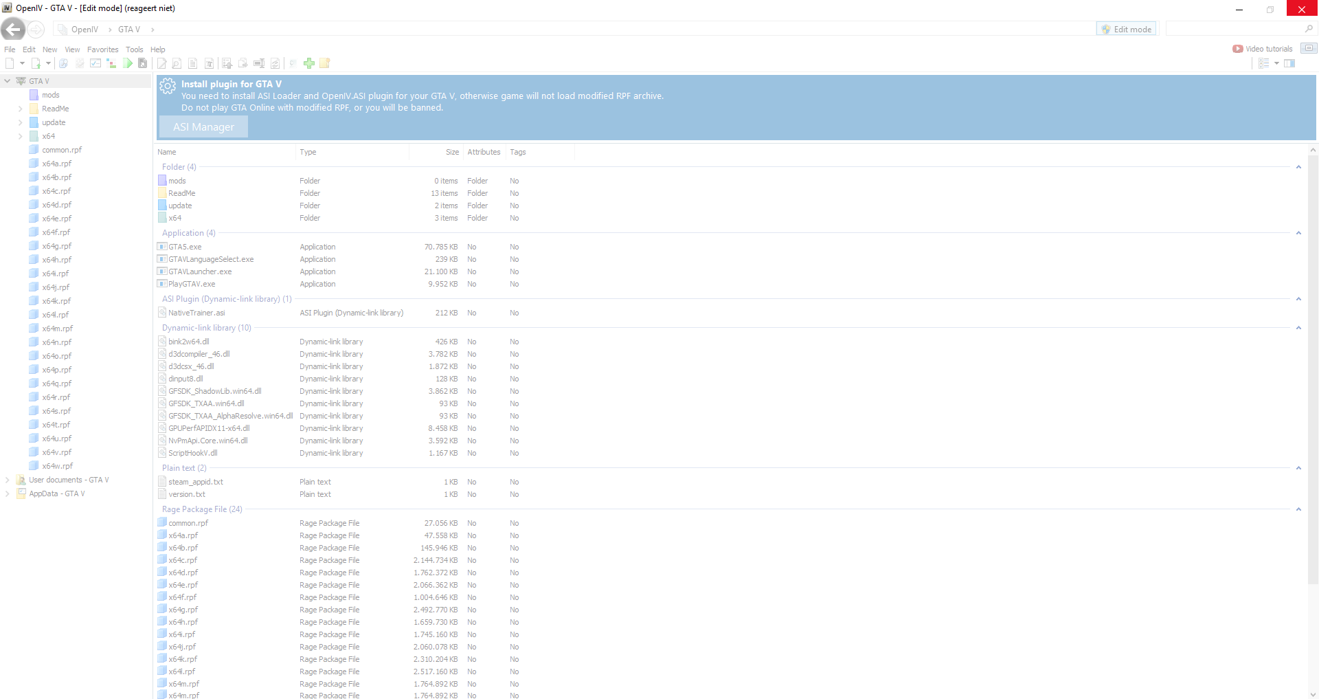 | Steps To Reproduce | open OpenIV go to 'tools' go to ASI manager | ||||