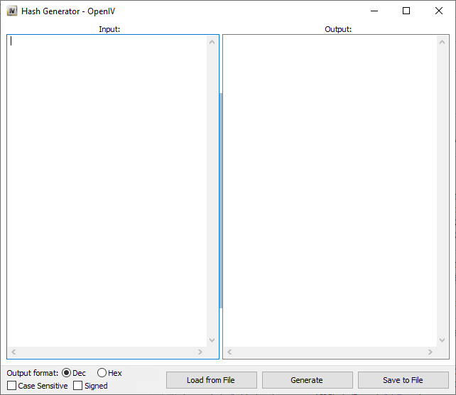 | Description | When using the hash generator there should be options to - Change Hash algorithm: Default, Case Sensitive, AWC - Change Output format: Hex, Unsigned int, Signed int - Generate on typing | ||||