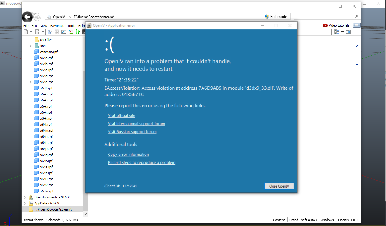 Descriptionconsistently since 4.0 I have only been able to open 1 .yft file in openiv. If/when I try open another I will receive multiple popups (included is one of them), and openiv will crash. I had hoped that with the fix of issue id 0000724 that this would be fixed but it wasn't.