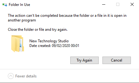 | Additional Information | Says file is open in another program but i checked via task manager and i couldn't find whats causing it to choke. | ||||