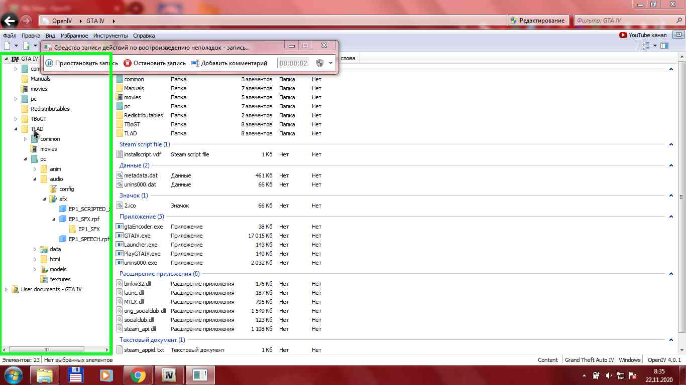 | Additional Information | Screenshots in Russian !!! So sorry! Additional information: Recording session: 22.11.2020 8:35:54 - 8:43:35 Problem stages: 11, missed stages: 0, Other errors: 0 Operating system: 7601.24545.x86fre.win7sp1_ldr_escrow.200102-1707 6.1.1.0.2.1 problem Stage 1: the User clicked "TLAD (structure element)" with the left mouse button in " OpenIV-GTA IV - [read Mode]" Program: OpenIV, 4.0.1.1452, New Technology Studio, OPENIV.EXE, OPENIV.EXE User interface elements: TLAD, TTreeView, treeHost, TPanel, ViewPane, TPanel, OpenIV-GTA IV - [read Mode], TMainWindow Problem stage 2: the User clicked "pc (structure element)" with the left mouse button in " OpenIV-GTA IV - [read Mode]" Program: OpenIV, 4.0.1.1452, New Technology Studio, OPENIV.EXE, OPENIV.EXE User interface elements: pc, TTreeView, treeHost, TPanel, ViewPane, TPanel, OpenIV-GTA IV - [read Mode], TMainWindow Problem stage 3: the User left-clicked "audio (structure element)" in " OpenIV-GTA IV - [read Mode]" Program: OpenIV, 4.0.1.1452, New Technology Studio, OPENIV.EXE, OPENIV.EXE User interface elements: audio, TTreeView, treeHost, TPanel, ViewPane, TPanel, OpenIV-GTA IV - [read Mode], TMainWindow Problem stage 4: the User left-clicked "sfx (structure element)" in " OpenIV-GTA IV - [read Mode]" Program: OpenIV, 4.0.1.1452, New Technology Studio, OPENIV.EXE, OPENIV.EXE User interface elements: sfx, TTreeView, treeHost, TPanel, ViewPane, TPanel, OpenIV-GTA IV - [read Mode], TMainWindow Problem step 5: the User clicked "EP1_SFX .rpf (structure element)" with the left mouse button in " OpenIV-GTA IV - [read Mode]" Program: OpenIV, 4.0.1.1452, New Technology Studio, OPENIV.EXE, OPENIV.EXE User interface elements: EP1_SFX.rpf, TTreeView, treeHost, TPanel, ViewPane, TPanel, OpenIV-GTA IV - [read Mode], TMainWindow Problem step 6: the User left-clicked "EP1_SFX (structure element)" in " OpenIV-EP1_SFX.rpf - [read Mode]" Program: OpenIV, 4.0.1.1452, New Technology Studio, OPENIV.EXE, OPENIV.EXE User interface elements: EP1_SFX, TTreeView, treeHost, TPanel, ViewPane, TPanel, OpenIV-EP1_SFX.rpf - [read Mode], TMainWindow Problem step 7: Start dragging the user to "Position (indicator)" in " OpenIV-EP1_SFX.rpf - [read Mode]" Program: OpenIV, 4.0.1.1452, New Technology Studio, OPENIV.EXE, OPENIV.EXE User interface elements: Position, vertical, TListView, TPanel, ViewPane, TPanel, OpenIV-EP1_SFX.rpf - [read Mode], TMainWindow Problem step 8: End user dragging to "Position (indicator)" in " OpenIV-EP1_SFX.rpf - [read Mode]" Program: OpenIV, 4.0.1.1452, New Technology Studio, OPENIV.EXE, OPENIV.EXE User interface elements: Position, vertical, TListView, TPanel, ViewPane, TPanel, OpenIV-EP1_SFX.rpf - [read Mode], TMainWindow Problem step 9: the User double-clicked "LOADINGTUNE_1 (list item)" with the left mouse button in " OpenIV-EP1_SFX.rpf - [read Mode]" Program: OpenIV, 4.0.1.1452, New Technology Studio, OPENIV.EXE, OPENIV.EXE User interface elements: LOADINGTUNE_1, TListView, TPanel, ViewPane, TPanel, OpenIV-EP1_SFX.rpf - [read Mode], TMainWindow Problem step 10: the User double-clicked "LOADINGTUNE_1 (list item)" with the left mouse button in " OpenIV-EP1_SFX.rpf - [read Mode]" Program: OpenIV, 4.0.1.1452, New Technology Studio, OPENIV.EXE, OPENIV.EXE User interface elements: LOADINGTUNE_1, TListView, TPanel, ViewPane, TPanel, OpenIV-EP1_SFX.rpf - [read Mode], TMainWindow Problem stage 11: user Comment: "My bug in OpenIV! I have bug! Error: EReadError: Stream read error! Errror in 08:36:20, 22.11.2020! OS: Windows 7 32-bit SP1 Russian! Laptop: Lenovo B570e!" Program: User interface element: | ||||