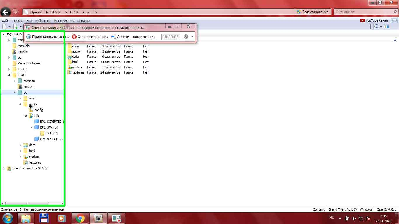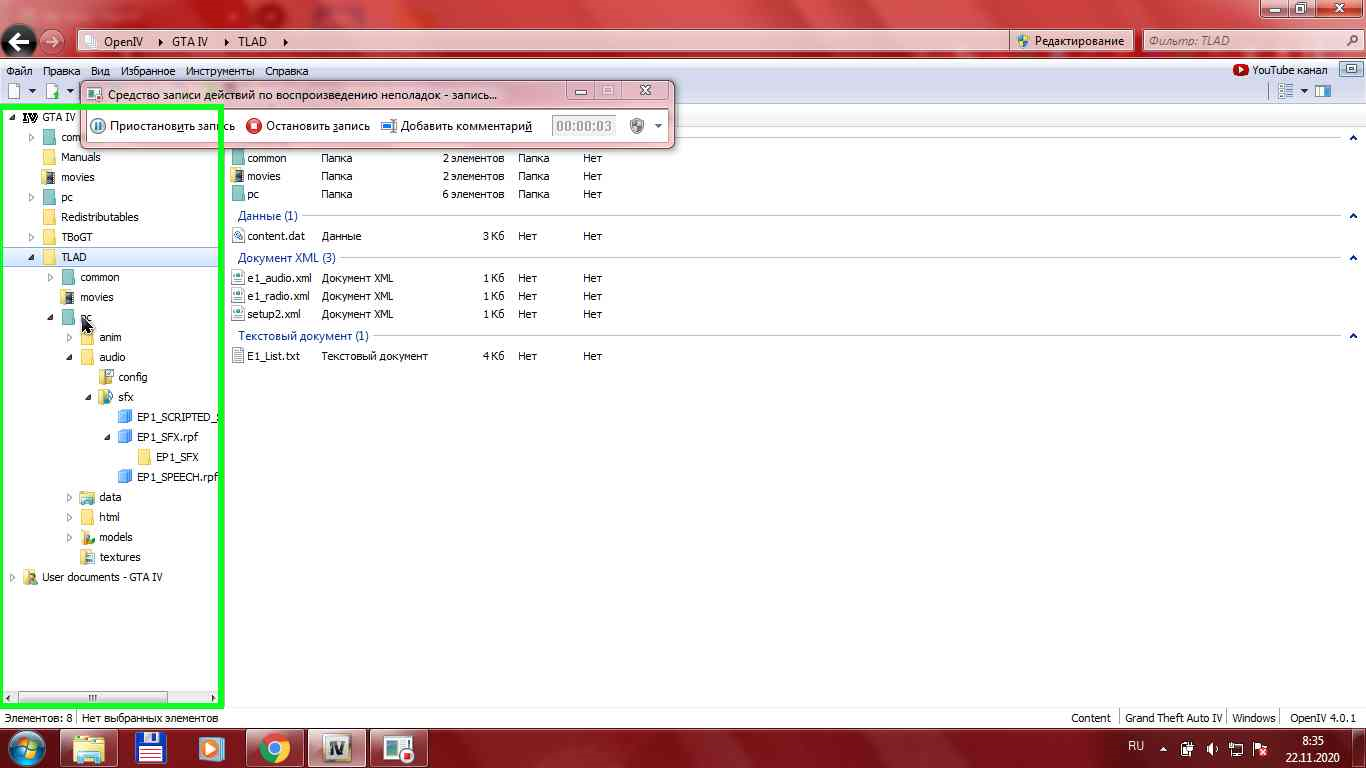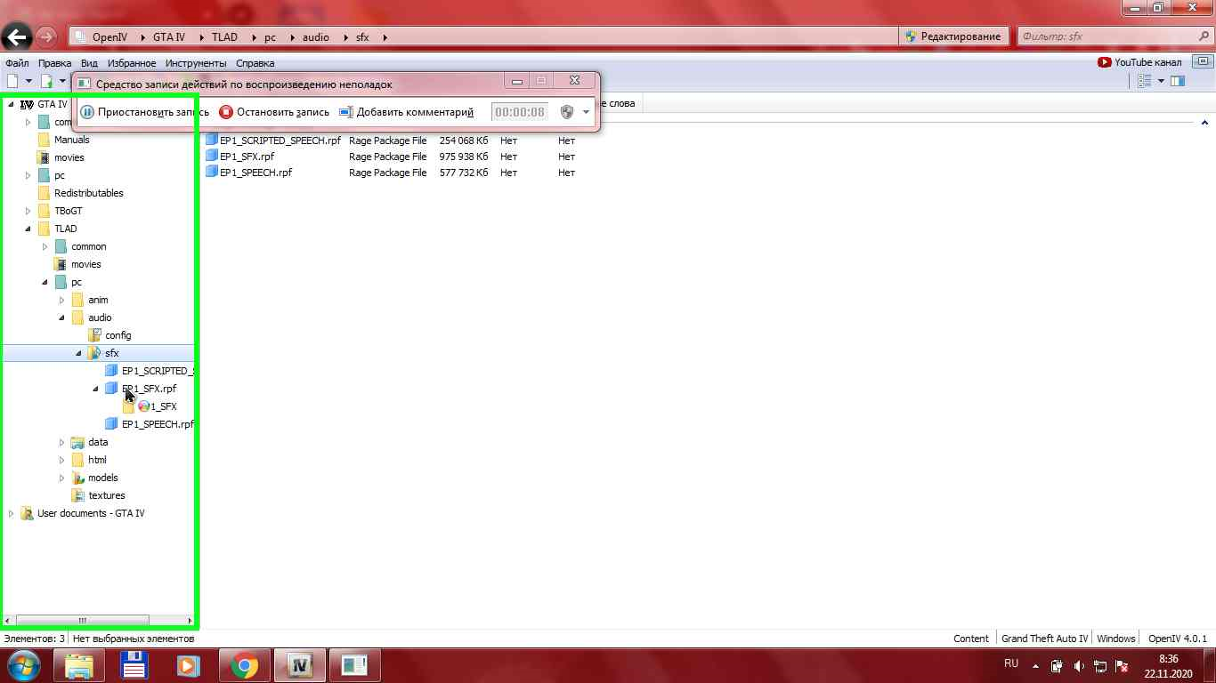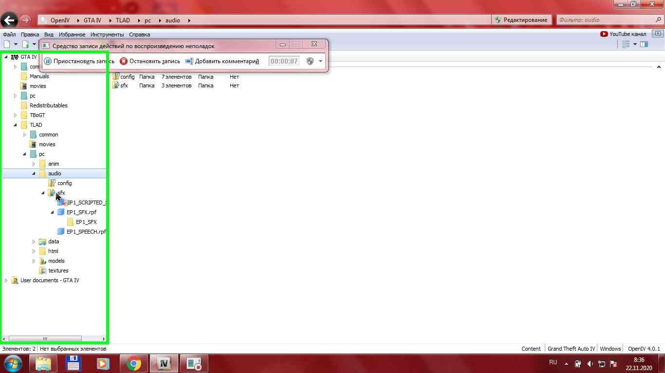 | Steps To Reproduce | Problem Step 1: (11/22/2020 8:35:57 AM) User left-click "TLAD (structure element)" in "OpenIV - GTA IV - [Reading Mode]" Problem Step 2: (11/22/2020 8:35:58 AM) User left-click "pc (structure element)" in "OpenIV - GTA IV - [Reading Mode]" Problem Step 3: (11/22/2020 8:36:00 AM) User left-clicked "audio (structure element)" in "OpenIV - GTA IV - [Reading Mode]" Problem Step 4: (11/22/2020 8:36:01 AM) User left click on "sfx (structure element)" in "OpenIV - GTA IV - [Reading Mode]" Problem Step 5: (11/22/2020 8:36:02 AM) User left-clicked "EP1_SFX.rpf (structure element)" in "OpenIV - GTA IV - [Reading Mode]" Problem Step 6: (11/22/2020 8:36:03 AM) User left click on "EP1_SFX (structure member)" in "OpenIV - EP1_SFX.rpf - [Reading Mode]" Problem Step 7: (11/22/2020 8:36:05 AM) Start user dragging to "Position (Indicator)" in "OpenIV - EP1_SFX.rpf - [Read Mode]" Problem Step 8: (11/22/2020 8:36:11 AM) Completion of user drag to "Position (indicator)" in "OpenIV - EP1_SFX.rpf - [Read Mode]" Problem Step 9: (11/22/2020 8:36:12 AM) User double-clicked "LOADINGTUNE_1 (list item)" with the left mouse button in "OpenIV - EP1_SFX.rpf - [Reading Mode]" Previous Next Problem Step 10: (11/22/2020 8:36:18 AM) User double-clicked "LOADINGTUNE_1 (list item)" with the left mouse button in "OpenIV - EP1_SFX.rpf - [Reading Mode]" | ||||