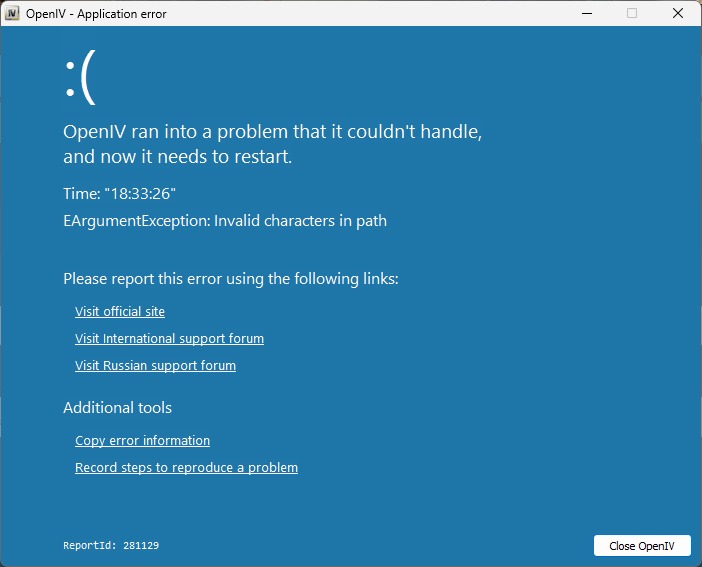 | Summary | 0000875: OpenIV crash upon starting | ||||