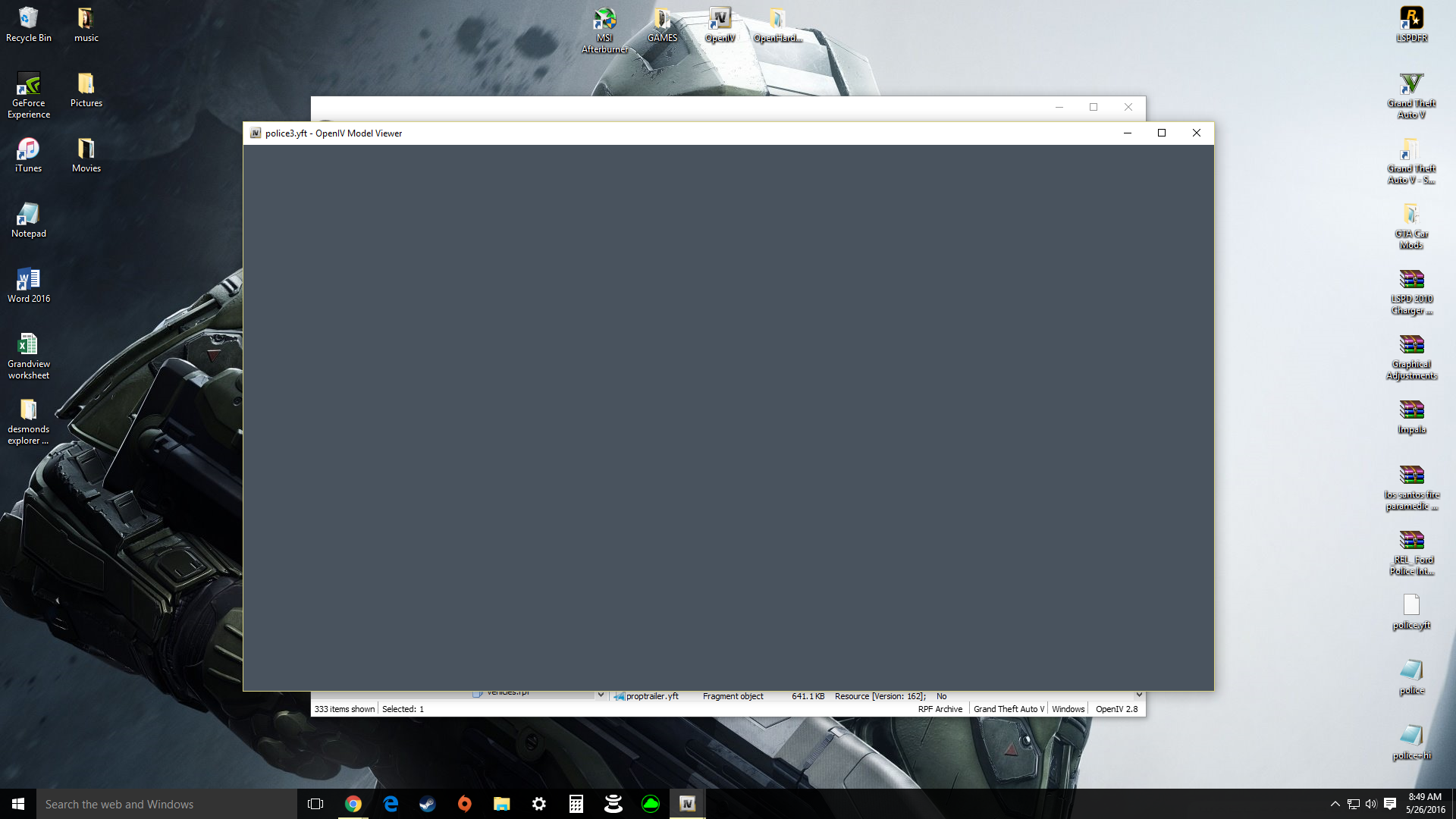 | Description | When I select a .ytd or .ytf file I see the car or car components. But when i go to select another cars .ytd or .ytf i get a blank screen. I have tried to uninstall open IV and reinstall it, nothing has worked. I am able to view one car at a time, I have to exit out of open IV to view another cars files. | ||||