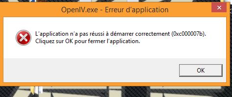 I know for sure, you can't have any d3d DLLs in OpenIV folder, this is the reason behind blank screen issue. If you google 0xc000007b you will find that is common issue when system files are corrupted. I think in your case this can be system DirectX files. Here is few links: http://ageofwindows.com/solved-0xc00007b-error-application-unable-start-correctly/ http://www.solveinweb.com/solved-the-application-was-unable-to-start-correctly-0xc000007b-click-ok-to-close-the-application/ |