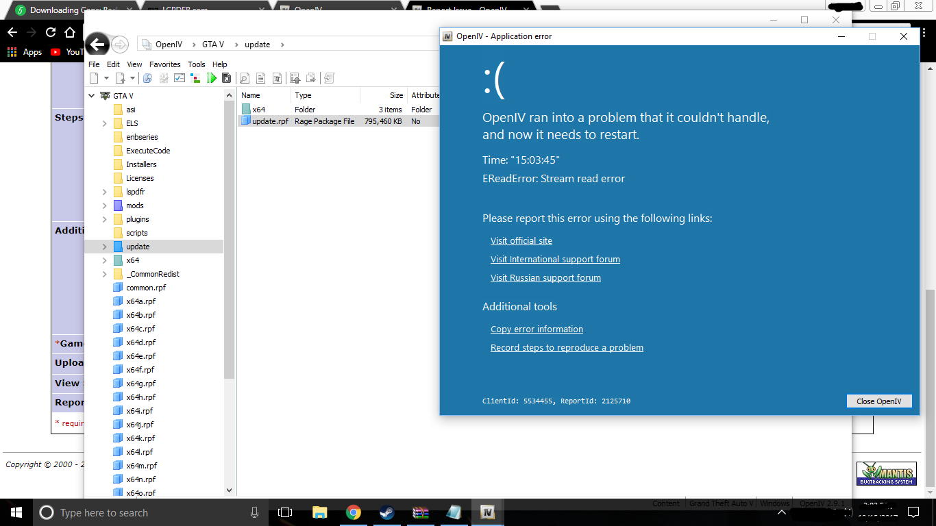 | Description | Whenever I try to open an RPF file like update.rpf for example, OpenIV crashes. Just going into the file causes a crash. I just installed OpenIV and have not used it to put in any mods yet. | ||||