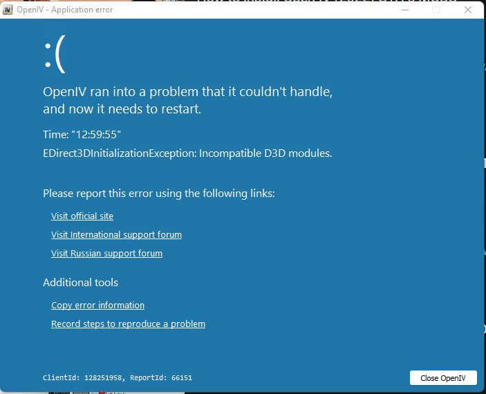 | Description | Whenever i open a model i get an error saying that the D3D modules are incompatible | ||||